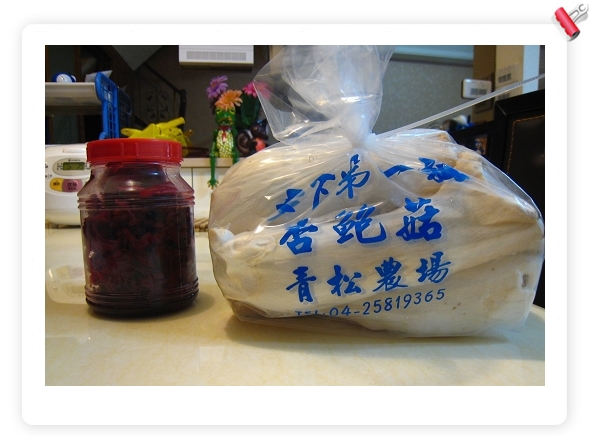 ↑回家前在會場敗了一包杏鮑菇回家,這樣一包$120還是150忘了,左手邊的