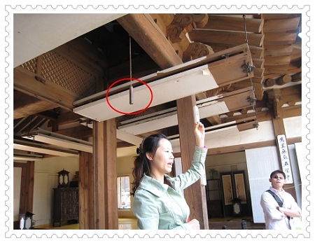 ▼導遊解說圓圈處那個東西的用處,是用來穿鞋時,怕重心不穏時,