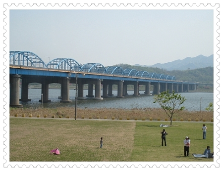 ▼韓國漢江,江畔都有綠地休閒的地方,他們放放風箏,野餐